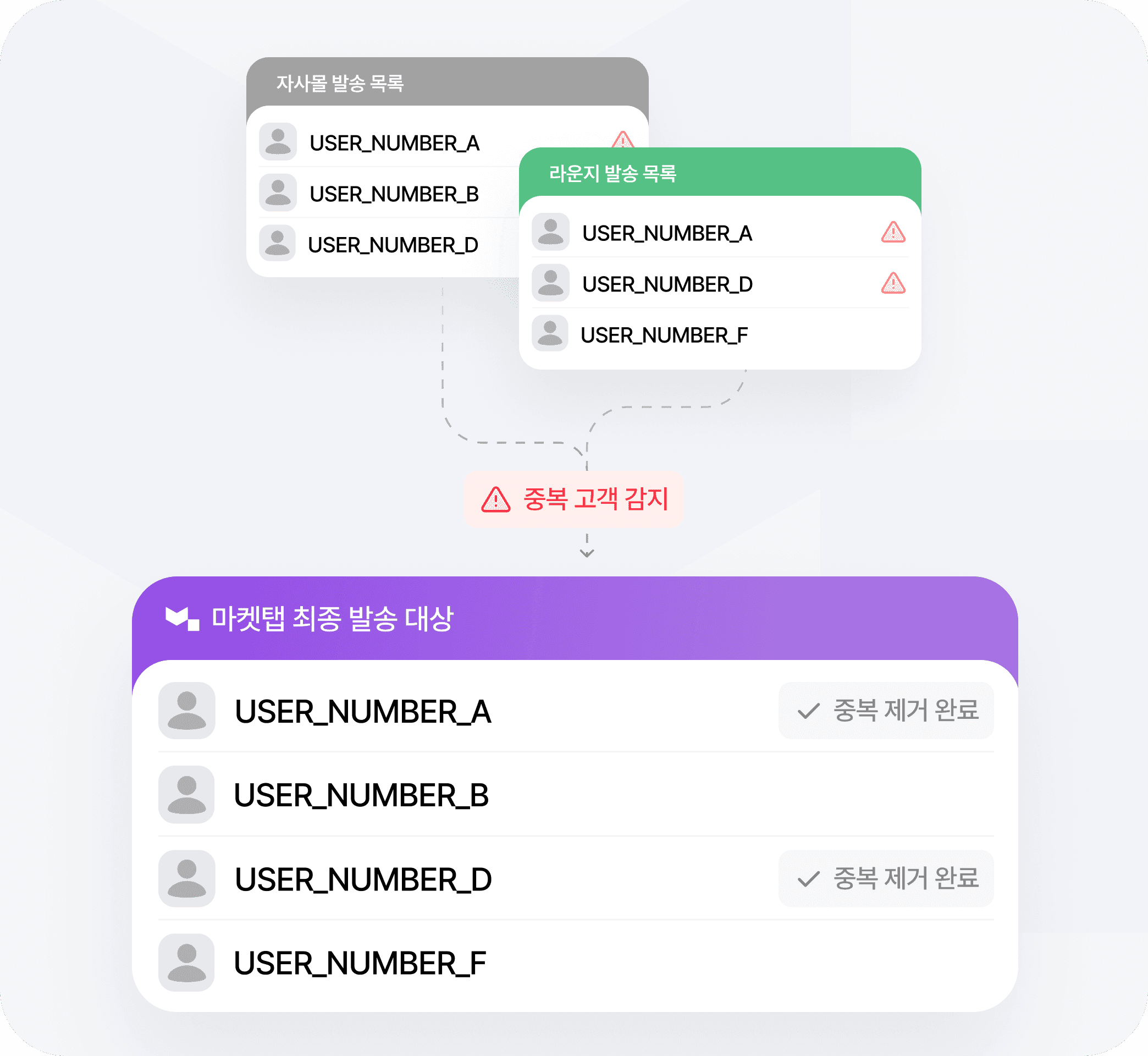 동일 고객 중복 발송을 자동으로 필터링합니다.