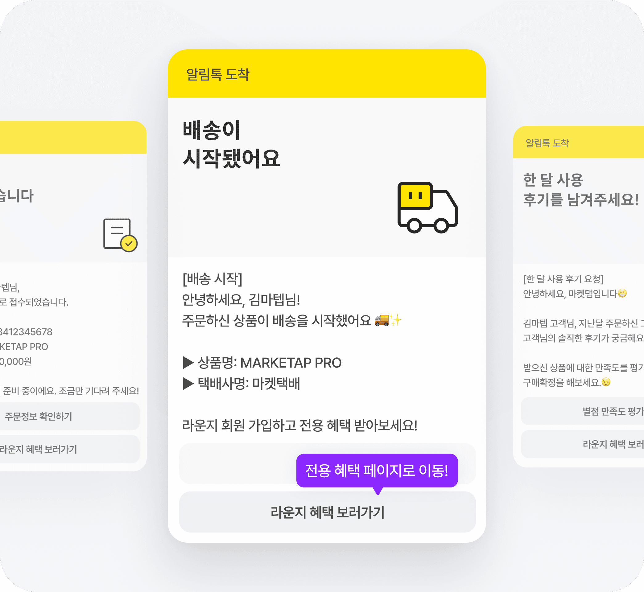 알림톡 하단 CTA로 구매·배송 등 주요 접점에서 라운지 혜택을